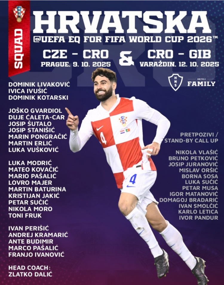 9月22日讯 为了迎接10月的国际比赛日,克罗地亚公布了新一期的国家队大名单,莫德里奇、佩里西奇领衔,格瓦迪奥尔、斯坦尼西奇入选。